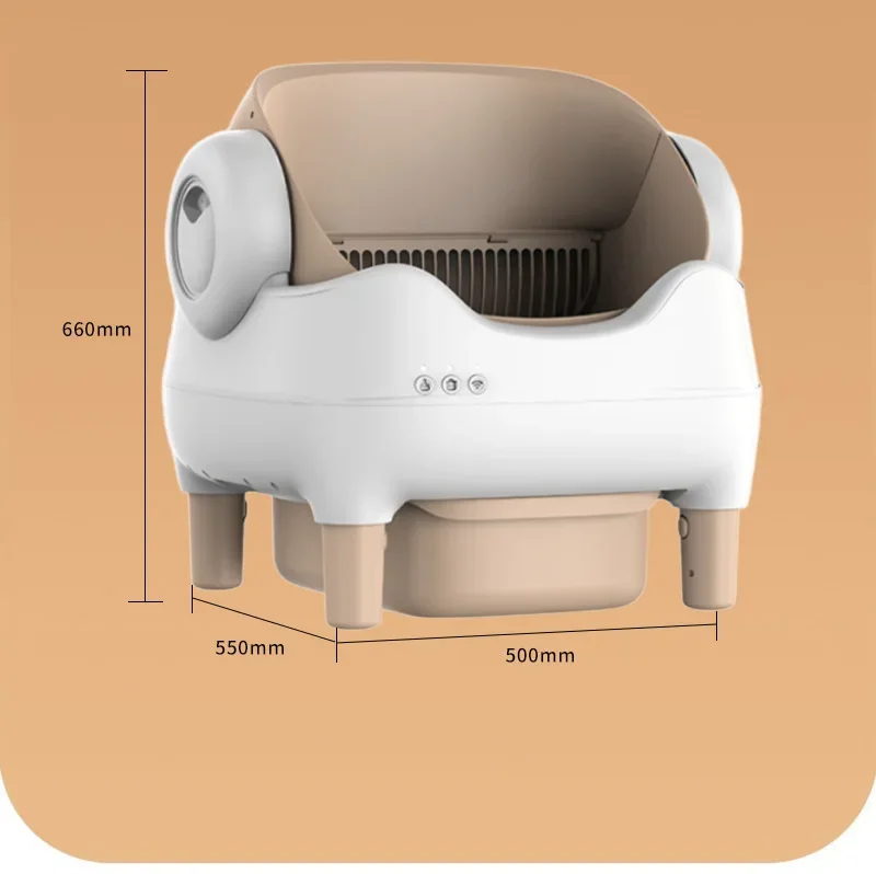 Easy & Safe Access for Cats. Unlike traditional enclosed litter boxes, this automatic litter box features a roomy open-top design that cats naturally love. The open layout offers a stress-free and comfortable space for cats of all sizes—even larger breeds—making the transition to an automatic litter box easier and safer. Ideal for first-time users of smart litter boxes, this design ensures easy entry and exit, reduces fear or hesitation, and supports your cat’s natural behavior. Safe, inviting, and user-friendly