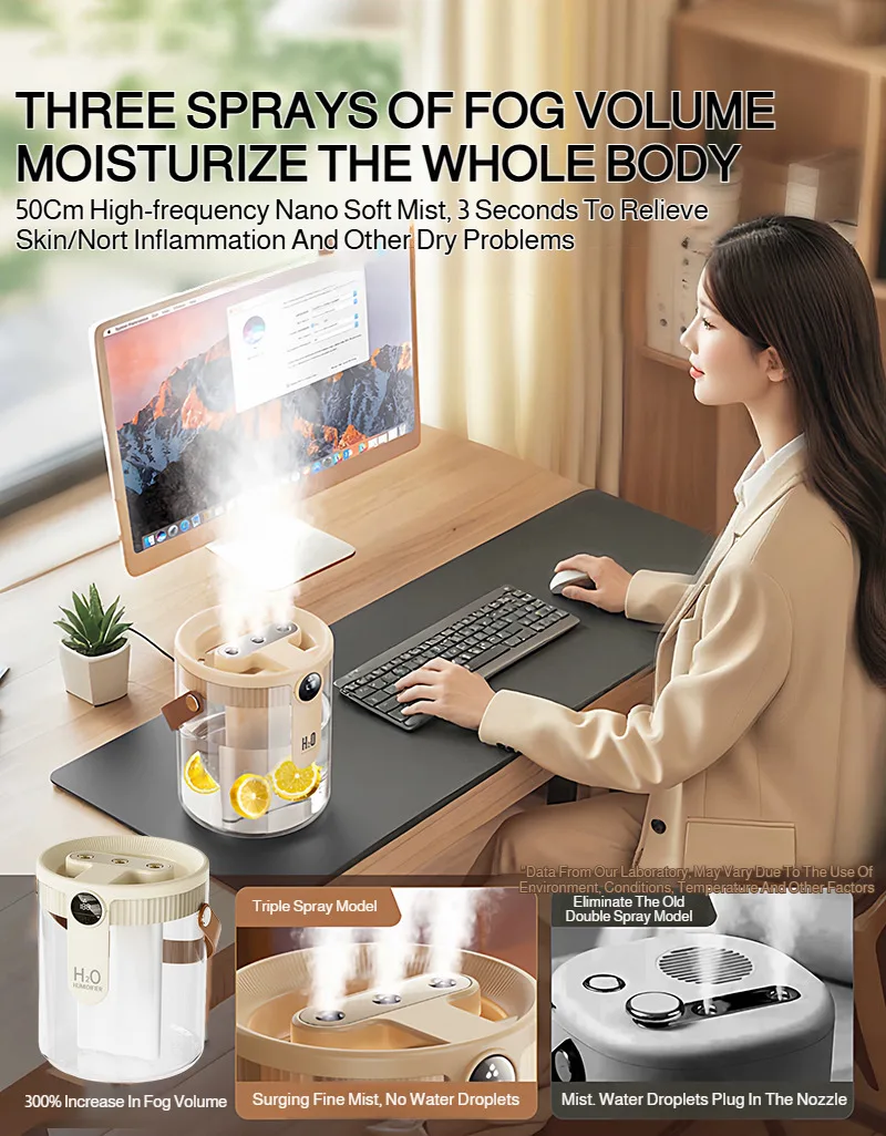 USB Small Humidifier With Three Sprays And Large Amount Of Mist/Mini Humidifier With Night Light For Bedroom Desktop Large Mist